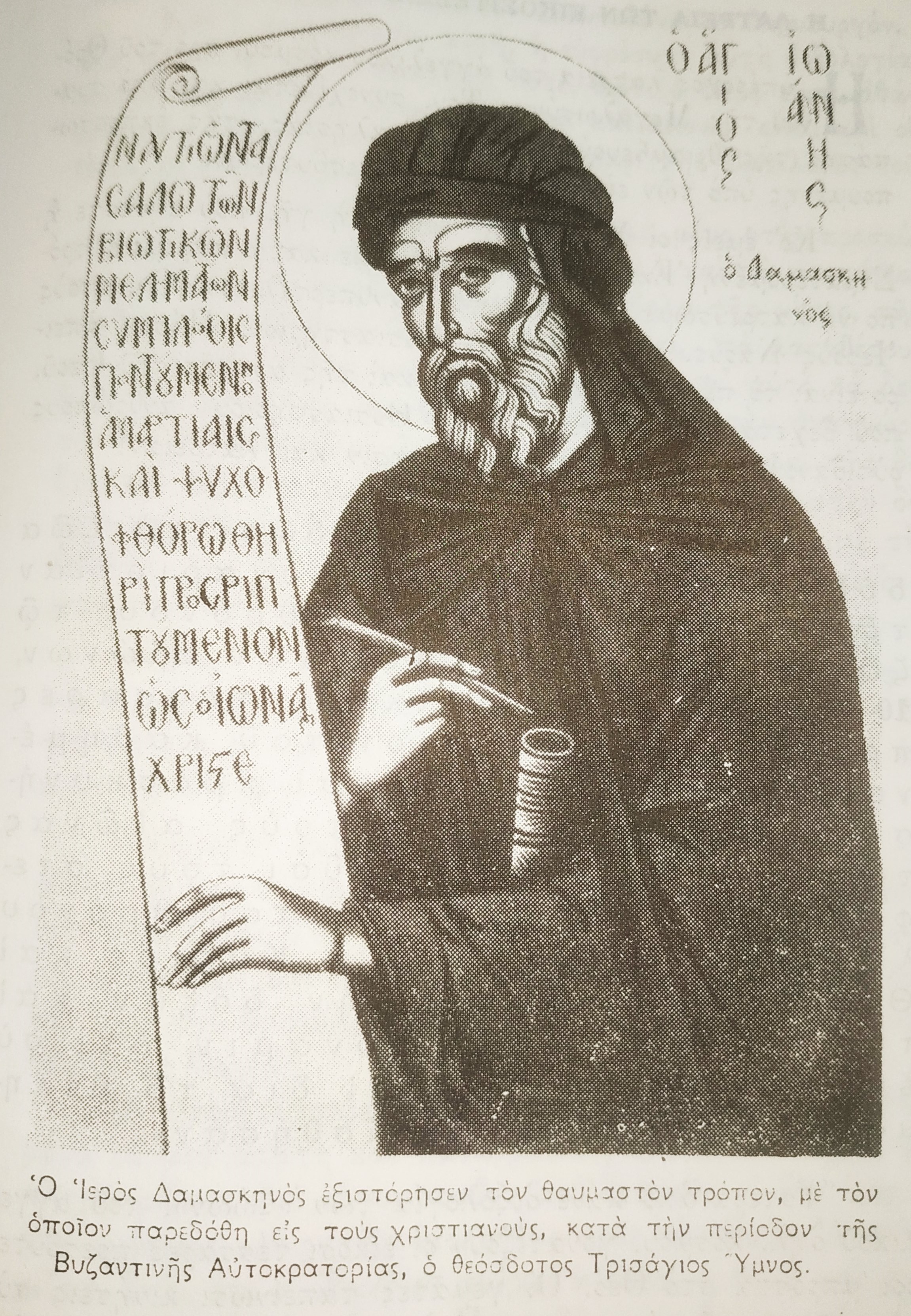 «Ὅτι εἰς τήν Ἁγίαν Τριάδα λέλεκται τό τρισάγιον, μάρτυς ὁ θεῖος καί ἱερός Ἀθανάσιος, Βασίλειος καί Γρηγόριος καί πᾶς ὁ τῶν θεοφόρων Πατέρων χορός. Διά τῆς τρισσῆς ἁγιότητος τάς τρεῖς τῆς ὑπερουσίου θεότητος ὑποστάσεις τά Ἅγια Σεραφείμ ἡμῖν ὑπεμφαίνουσιν. Διά δέ τῆς μιᾶς θεότητος (ἑνικός) τήν μίαν τῆς πειθαρχικῆς Τριάδος οὐσίαν τε καί Βασιλείαν ἀναγνωρίζουσι».
