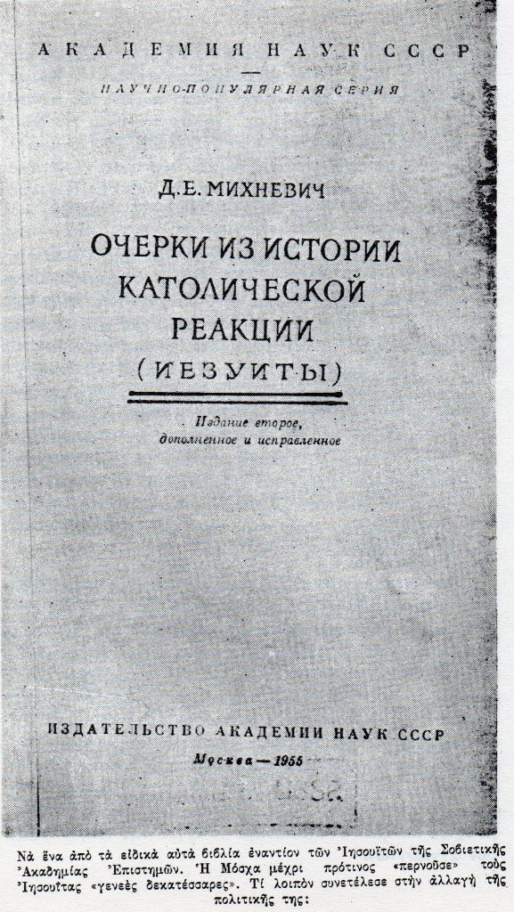 Στήν παλαιά προεπαναστατική Ρωσία ἔχουν κυκλοφορήσει χιλιάδες σοβαρῶν βιβλίων, πού ἀποκαλύπτουν τήν σατανική δρᾶσι τῶν Ἰησουϊτῶν εἰς βάρος τοῦ Ρωσικοῦ καί ἄλλων λαῶν καί εἰδικῶς Ὀ ρ θ ο δ ό ξ ω ν. Ὡς καί αὐτή ἀκόμη ἡ Σοβιετική Ἐρυθρά Κυβέρνησις καί τό Κόμμα δέν μποροῦσαν ν’ ἀγνοήσουν τήν δρᾶσιν αὐτῶν τῶν «ἀνταξίων» συναγωνιστῶν των. Κατ’ ἐντολήν τοῦ ἰδίου τοῦ Στάλιν, ἡ Ἀκαδημία τῶν ἐπιστημῶν τῆς Ε.Σ.Σ.Δ., ὡς καί ἄλλαι ὀργανώσεις εἶχαν συναθροίσει καί ἐκτυπώσει πλούσιο ὑλικό περί τῆς δράσεως τῶν Ἰησουιτῶν ἀπό τῆς ἱδρύσεως Τάγματος (1540) μέχρι σήμερα. Ὑπάρχουν πολλές τέτοιες ἐκδόσεις.
