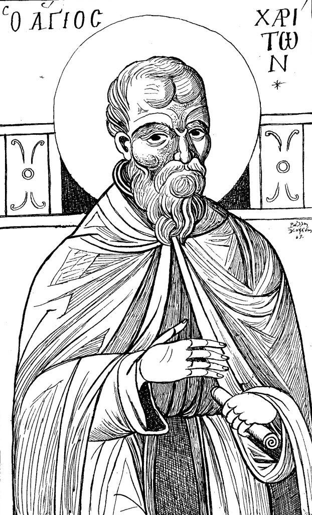 Ταῦτα καί τά τοιαῦτα διδάσκων τούς μαθητάς του ὁ θεῖος Χαρίτων, τούς ηὐχήθη ἐξ ὕψους σωτηρίαν ψυχῆς· ἔπειτα χωρίς καμμίαν ἀσθένειαν, οὐδέ κανένα πόνον εἰς τά μέλη τοῦ σώματός του, πεσών ἐπάνω εἰς τόν κράββατον καί ἁπλώσας τούς πόδας του, παρέδωκεν εὐθύς τήν ἁγίαν του ψυχήν χαίρουσαν εἰς τούς Ἁγίους Ἀγγέλους, καί οὕτω μετέβη εἰς τήν ἀτελεύτητον μακαριότητα, ἐκεῖ ἔνθα διαδέχεται ἀνάπαυσις εὐτυχεστάτη ἐκείνους, οἱ ὁποῖοι ἵδρωσαν καί ἐκοπίασαν εἰς τόν ἀμπελῶνα τοῦ Κυρίου, καί περιεπάτησαν τήν στενήν καί τεθλιμένην ὁδόν τῆς ἀρετῆς.